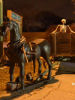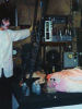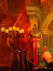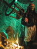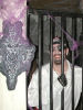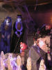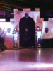 A 32ft x 10ft flag stone castle wall facade with an arch entrance and two antique replica doors serves as either a backdrop or an actual entrance. Four 27" gargoyles are perched on the top of the facade. Two 7ft tall "Death Knights" in armor stand on either side of the door. Two carriage lamps are mounted on either side of the arch. Vacuform Ram heads are fixed to the flats.