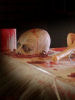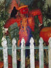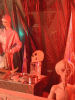 Several 4ft x 8ft brick wall flats combine as a backdrop. Miscellaneous bloodied body parts such as hands, feet, legs, and heads, are suspended on assorted metal hooks from the flats in a gruesome arrangement. A Mad Butcher (mannequin in costume) stands ready with meat cleaver in hand or holding rope to a guillotine.